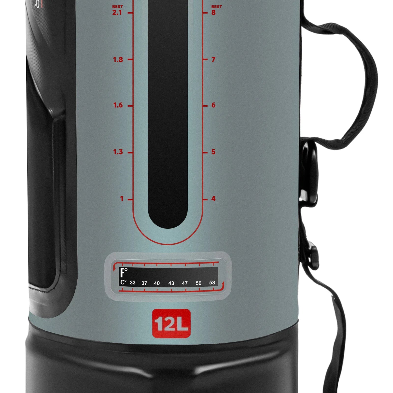 - Easy to use and portable: Large fill port, detachable shoulder strap, storage bag, and a clear design let you monitor remaining water and refill easily.