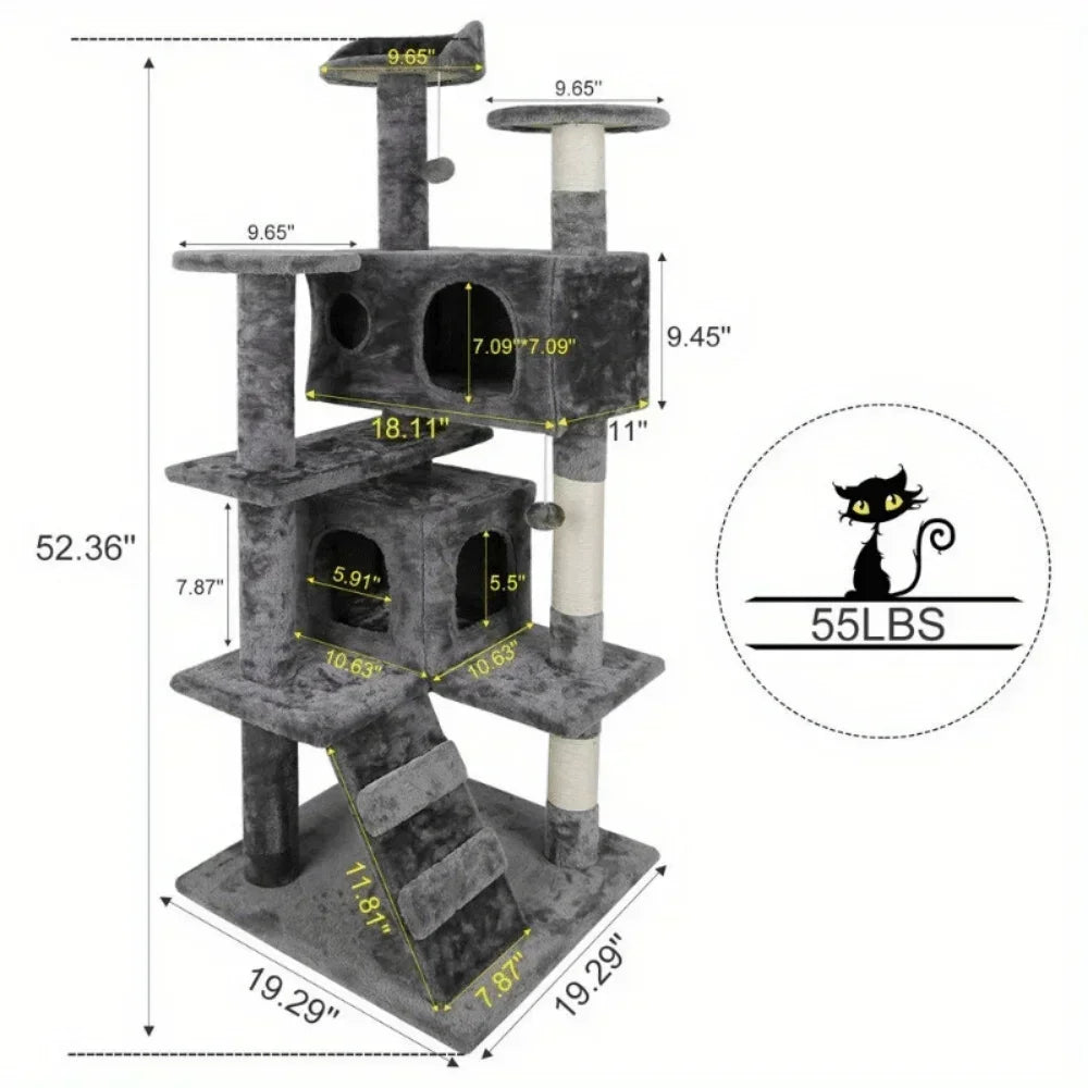 - Durable, safe design: premium particle board platforms and posts wrapped in natural sisal rope keep your cat steady as they climb, with a max load of 55 lbs.