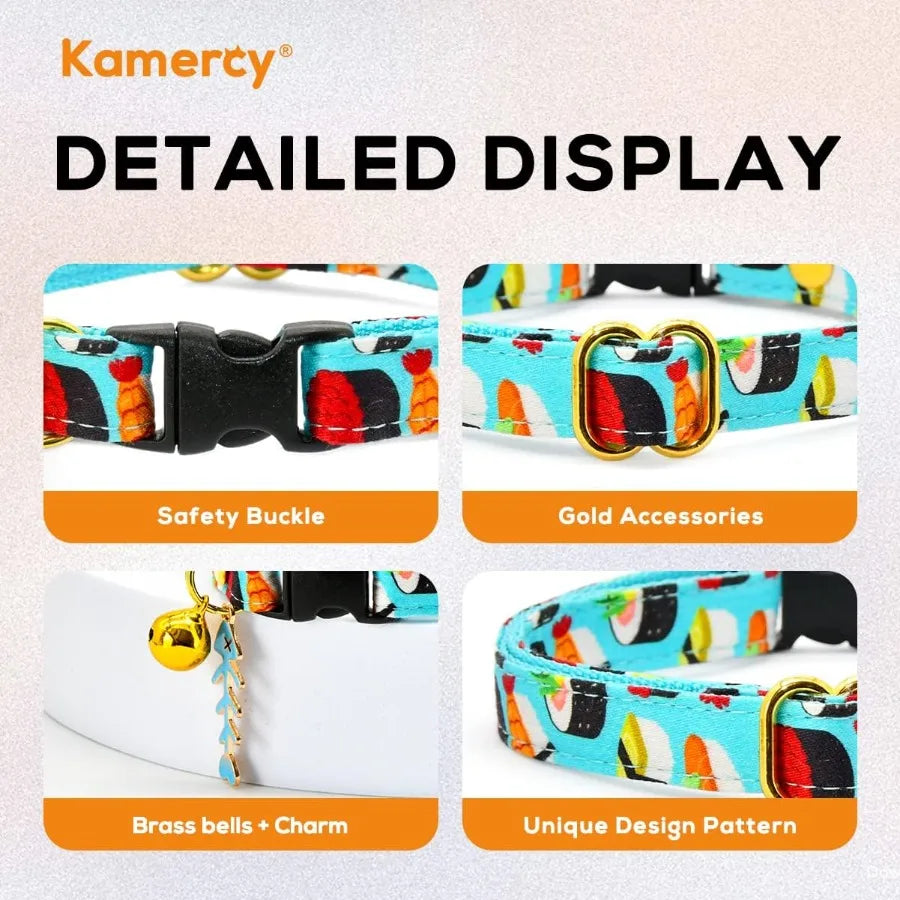Hign-concerned Cat Collar With Sushi Charm Safety Breakaway