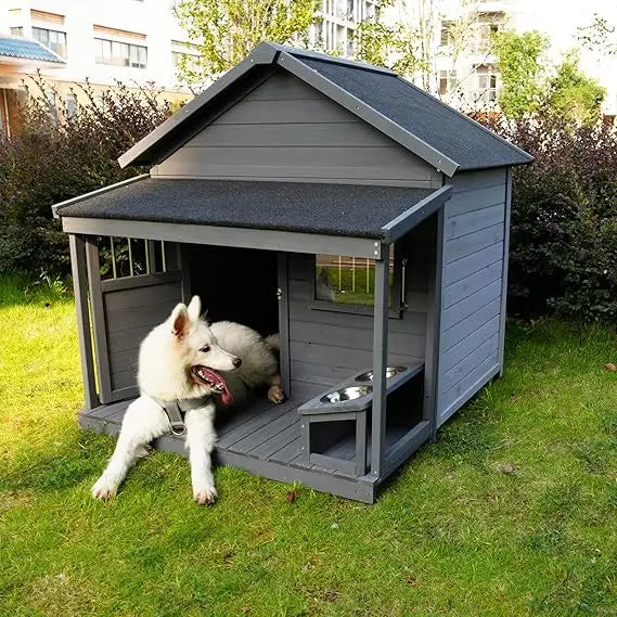 Weatherproof Wooden Dog Kennel With Porch Door Window