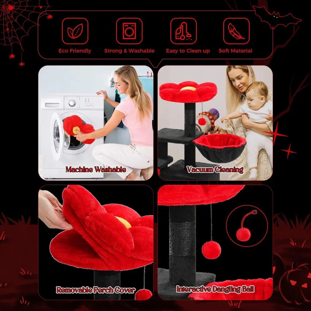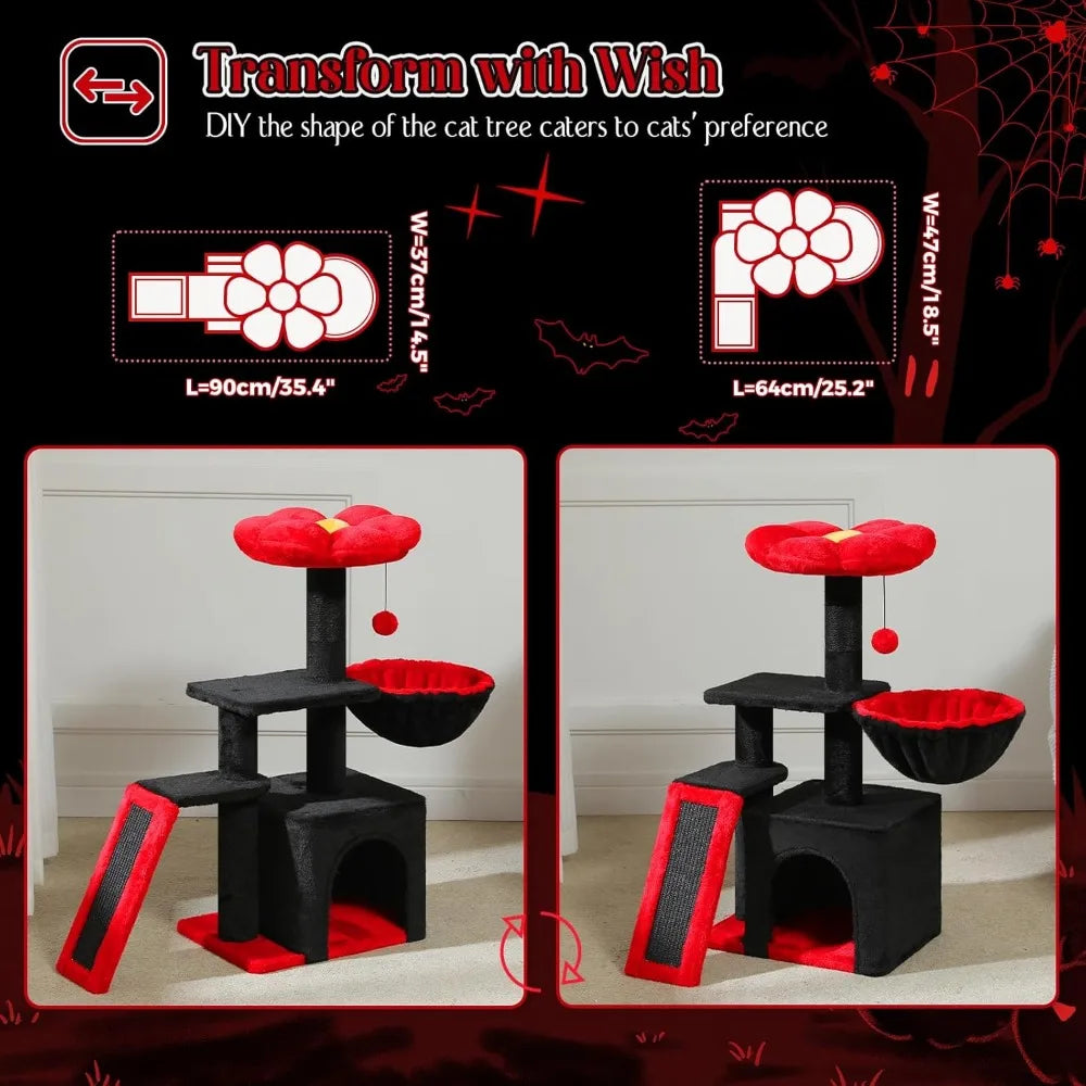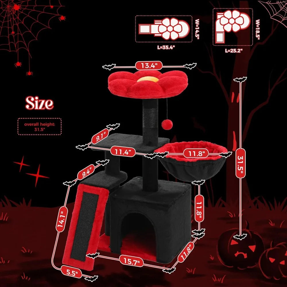 Gothic Style Indoor Cat Tree Flower Tower With Hammock
