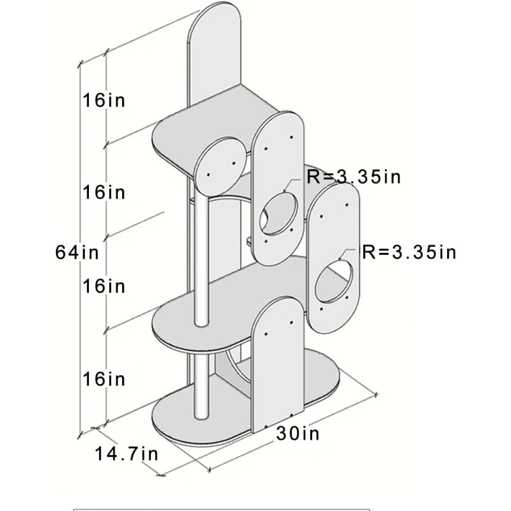 - 64 inches tall and multi-level design gives your cat expansive vertical space to climb, perch, observe, and stretch during active play or peaceful sunlit rests.